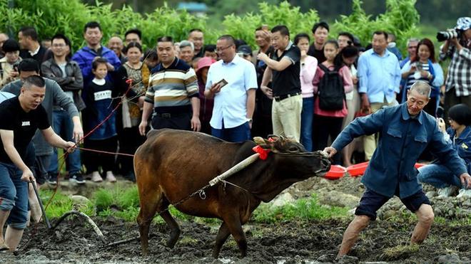 4月15日,福建省连城县客家古村培田村举办一年一度的春耕节,犁春牛、插秧、捕鱼等春耕民俗活动联袂上演。
