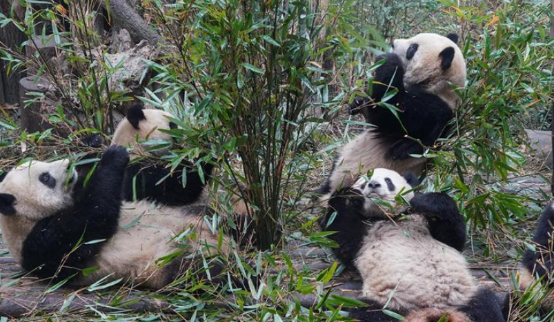 当日,在成都大熊猫繁育研究基地,大熊猫“滚滚”们迎来2020年的第一天。不少外地游客选择在假期来到成都,观看可爱的大熊猫。