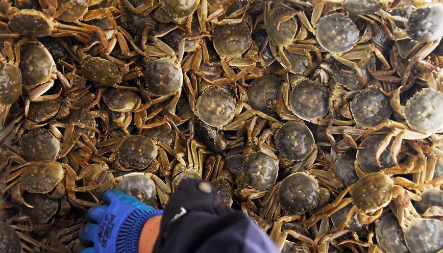 时下正值山东东营黄河口大闸蟹收获的季节,各养殖区的工人们正在紧张进行大闸蟹的收获、包装作业,将产品销售国内外市场。