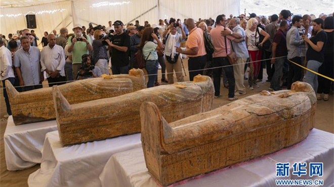 埃及文物部19日在南部城市卢克索举行的新闻发布会上宣布,埃及考古队近期发掘出30具3000年前的木质棺椁。