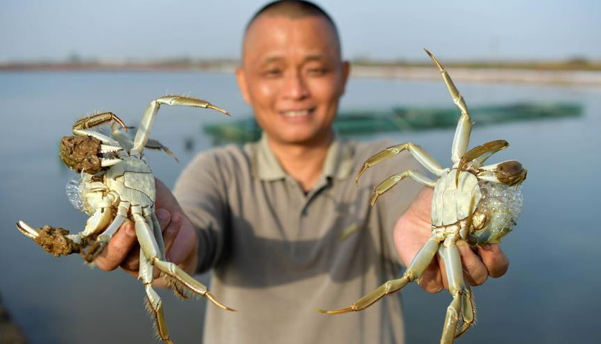 时下正值大闸蟹收获的季节,江西省南昌市新建区象山镇河林村的村民忙着进行大闸蟹的捕捞、包装和外销工作。