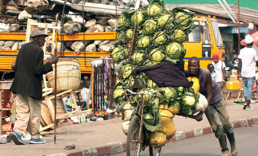 实拍靠自行车赚钱的刚果生意人,货物堆积如山堪比汽车,画面惊险