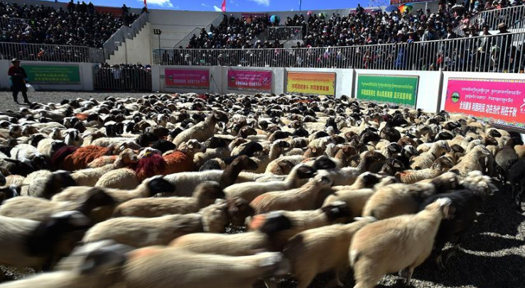 者下乡斗牛节历史悠久,是西藏自治区非物质文化遗产。牧民为参加比赛的种牦牛披绸挂缎,将牛群赶到位于日喀则市白朗县者下乡的斗牛场上。