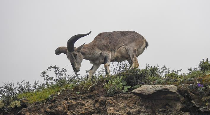 在西藏山南市洛扎县色乡海拔4000米左右的盘山路上,一群岩羊悠闲地吃着野果青草,完全不介意来往的车辆、行人和近在咫尺的镜头。