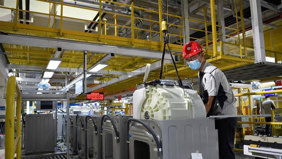 作为天津市首批复工复产的规上企业,天津海尔洗衣机互联工厂稳步提升生产进度,加大洗衣机生产量。