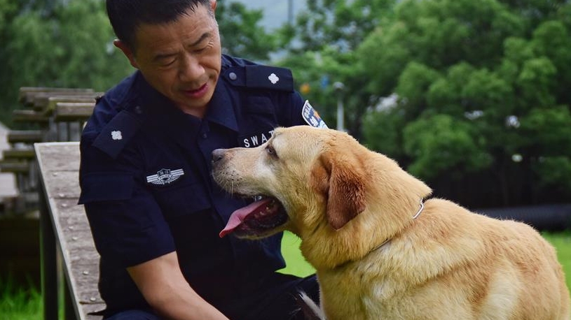拉布拉多犬“多多”是浙江杭州萧山区公安分局警犬训练基地的一只缉毒犬。它半个月大时来到基地,由训导员周吉荣教导长大。