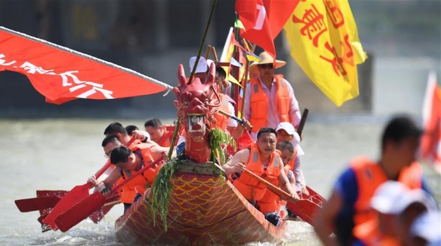 当日是农历五月初五,是中国民间的传统节日端午节。陕西省安康市第20届龙舟节在汉江上举行。