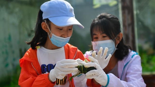 6月25日是端午节,青海省西宁野生动物园组织小朋友们为动物园内的灵长类动物包粽子,让动物们也享用端午节传统“美味”。