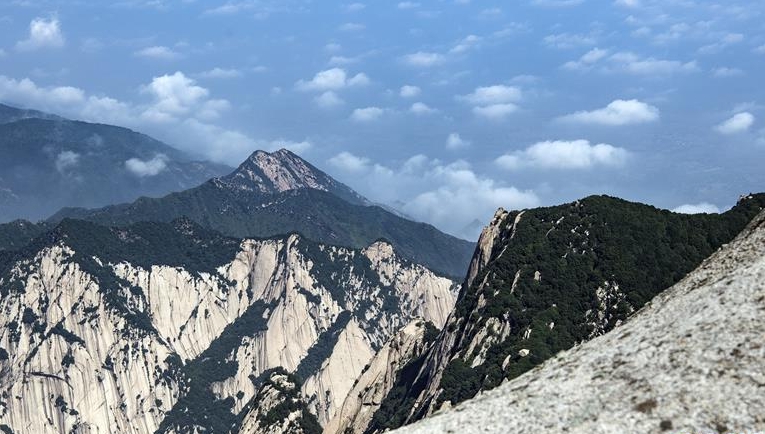 当日,西岳华山经历连续三天暴雨后,迎来灿烂的阳光。