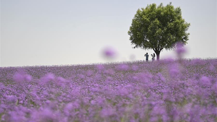 夏至时节,在地处毛乌素沙地边缘的宁夏银川市艾伊薰衣草生态基地,数千亩马鞭草绽放飘香。