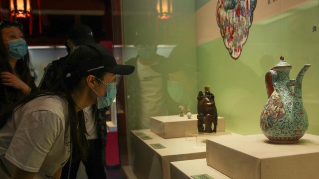 5月28日,观众在沈阳故宫博物院的“古趣童心——清宫文物中的儿童世界”展览上参观。