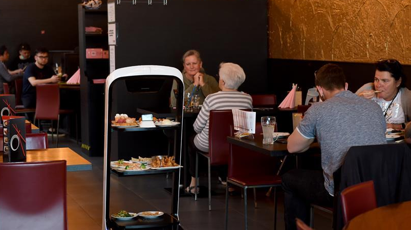 维也纳的一家亚洲餐厅于疫情期间重新营业后,更多利用机器人上菜,以减少服务员和顾客之间的非必要接触。