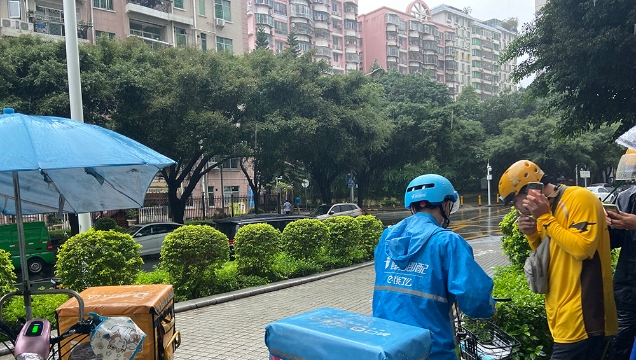 25日上午11时许,伴随着雷声,深圳市福田区开始下雨。