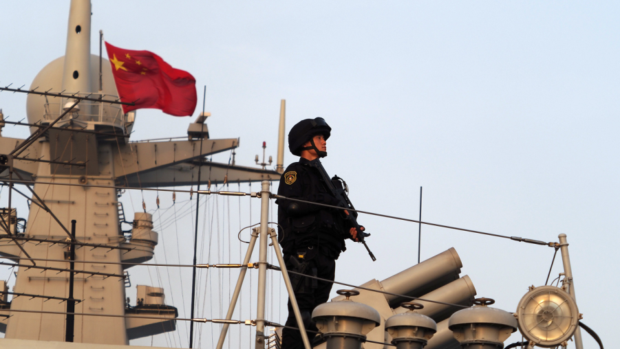 海军第35批护航编队特战队员在甲板上进行执勤警戒。(具体拍摄日期地点不详)