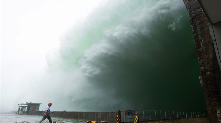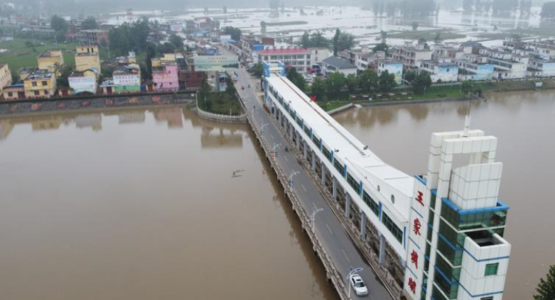 这是7月23日在安徽省阜南县拍摄的正在关闸的淮河王家坝闸。