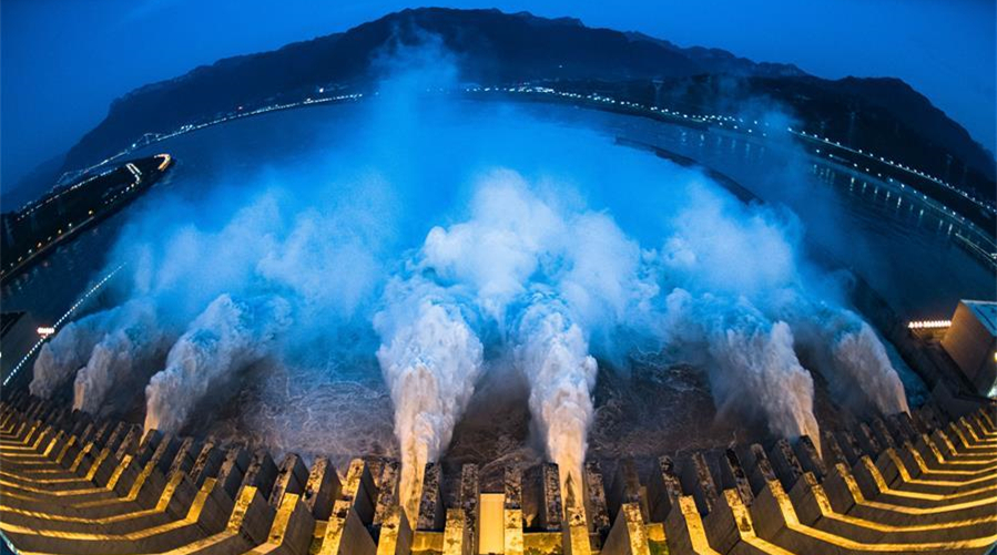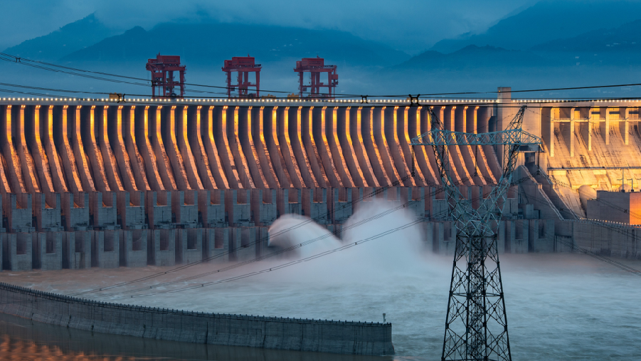 2020年7月16日,湖北宜昌,三峡枢纽右岸外送输电线路。