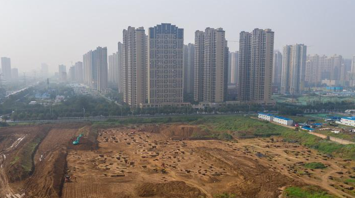 西安宜家工地挖出古墓 空中俯瞰数百墓坑密密麻麻