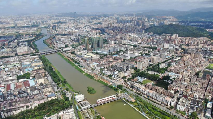 香港维多利亚港上空出现彩虹(6月16日摄)。 6月16日傍晚,雨后的香港维多利亚港上空出现彩虹,美丽景色吸引市民驻足拍照。