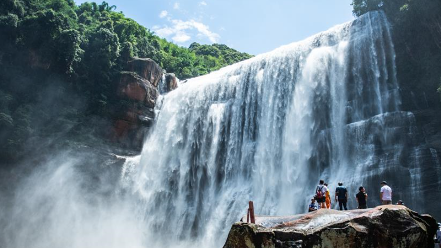 6月15日,游客在赤水大瀑布景区观光游玩。