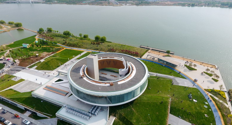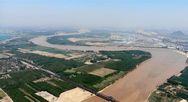 春暖花开的时节,济南黄河两岸春风送绿,大河、绿植与城市构成了一幅春的画卷。