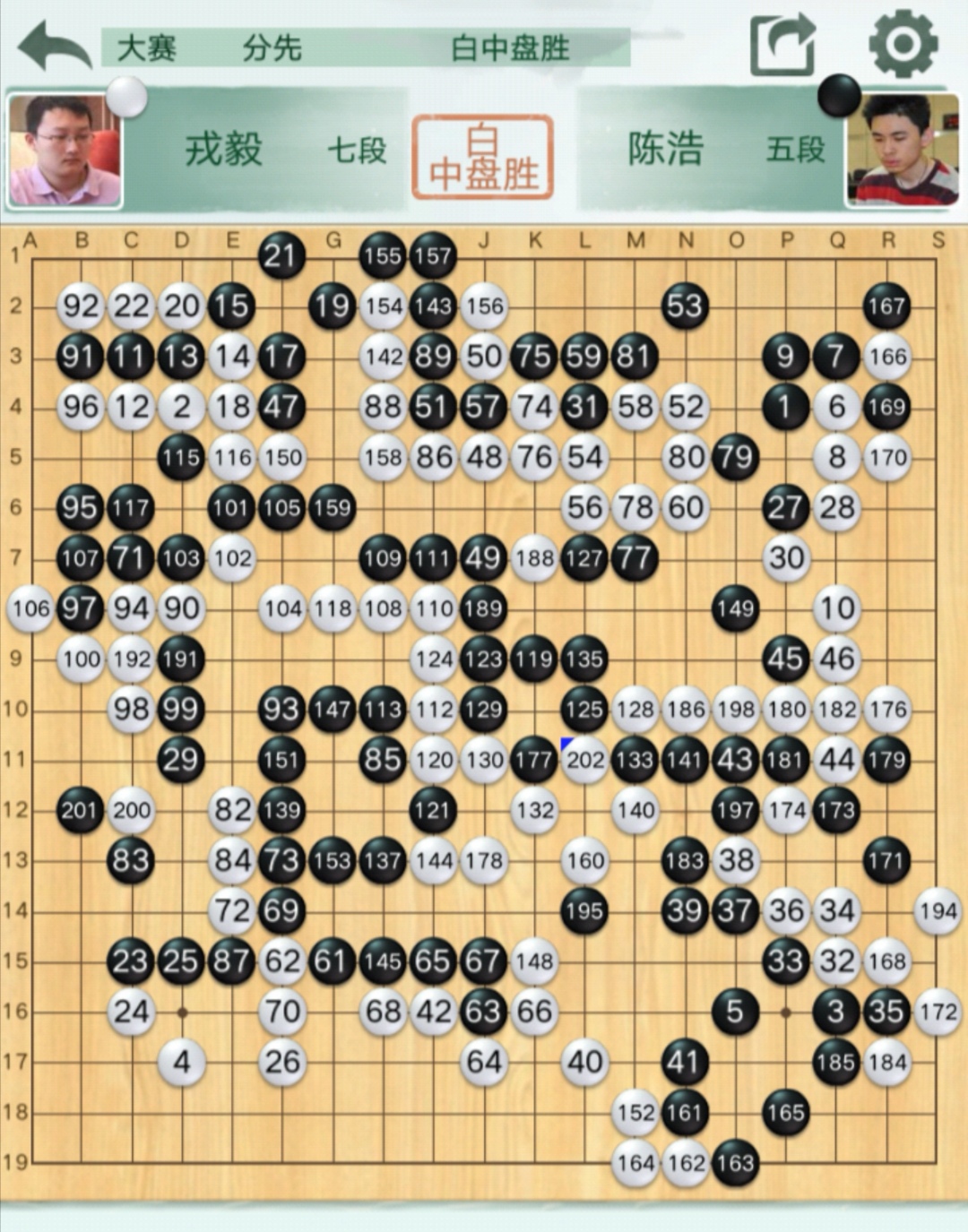 戎毅率先赢了陈浩五段(对阵棋谱)