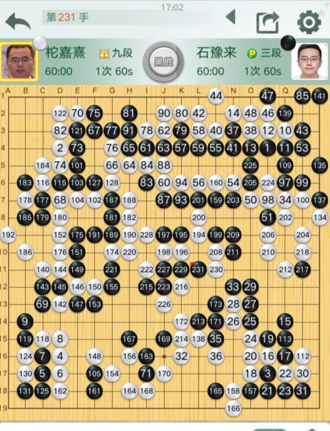 石豫来爆冷战胜柁嘉熹(对阵棋谱)
