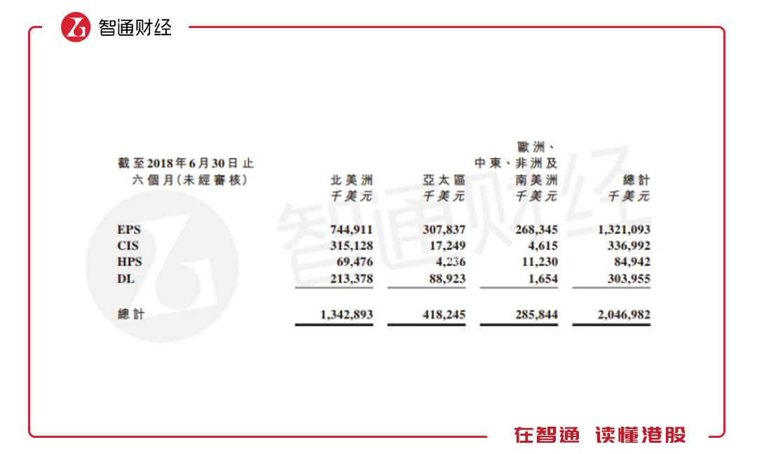 根据该公司业务布局情况,核心的EPS主要布局在北美洲地区,收入7.45亿美元,同比增长3%,收入占比36.4%,亚太区为3.08亿美元,同比增长2.7%,北美及亚太区的EPS收入占比达51.45%。所有产品布局在亚太区及北美区收入合计17.61亿美元,同比2.2%,收入占比86.03%。