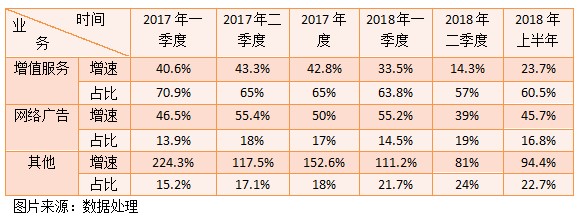 下面我们看该公司业务收入的变化,先看大类分录,有增值业务、网络广告和其他业务。