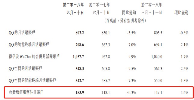 腾讯的网络游戏和社交网络紧密关联,流量引入需要靠社交网络,主要有QQ和微信两大导流社交利器。2018年上半年,QQ月活跃用户8.032亿户,同比下滑5.5%,而微信月活跃用户达10.577亿户,同比增长9.9%。中国14亿人口,流量基本被QQ和微信吸走了,且粘性非常高,主要是没有可以匹敌的竞争对手。