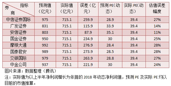 腾讯的打脸程度要比舜宇光学轻的多,最小的估值误差为11%,最大的为28%,券商总是把估值看的高一些,这样打脸程度让很多券商不会很难堪。以腾讯ADR的表现,16日该公司的股价不会很理想,而且参照美股前晚的表现,恒指可能要遭受较大的跌幅冲击。