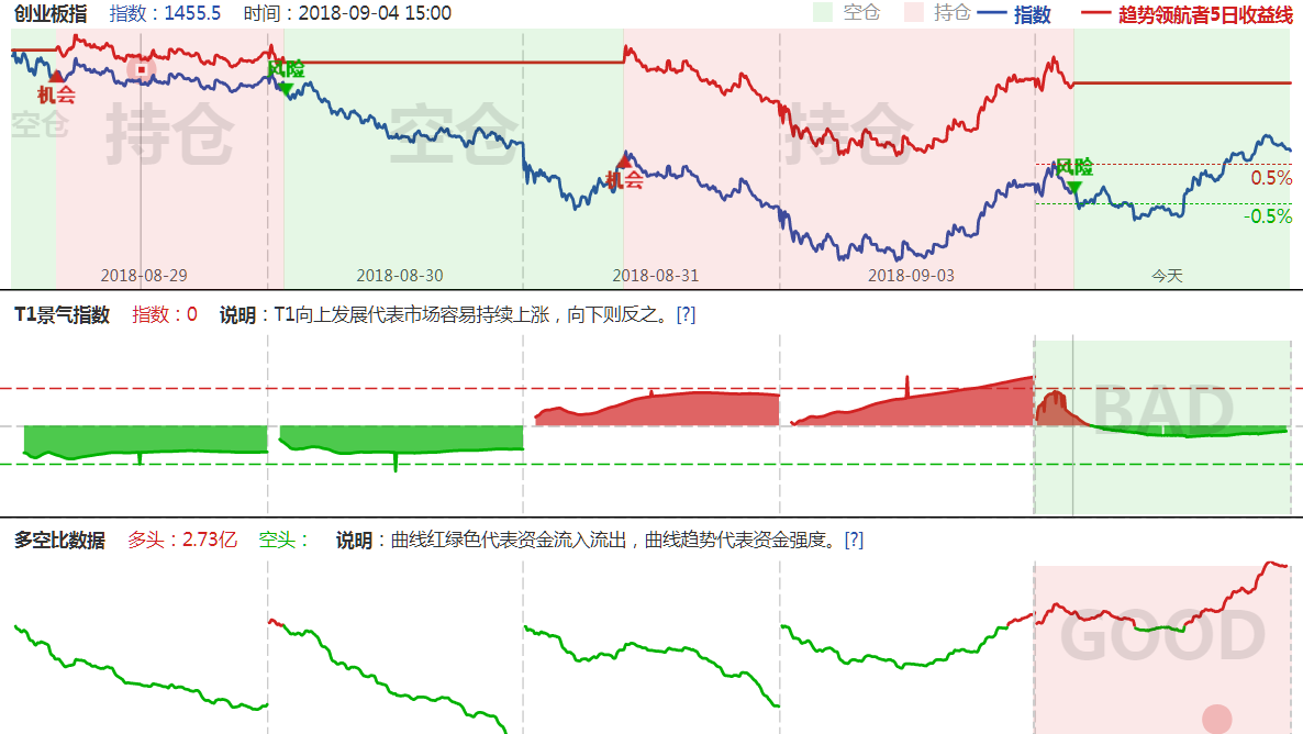 云财经讯,据云财经独家资金数据,截止收盘,创业板T1(T1代表市场人气)收在零轴下方,早盘创业板T1红开后冲高回落随即下穿零轴翻绿,尾盘绿幅有所收窄,代表市场对中小创的预期偏空;多空比数据(代表资金流)显示创业板资金呈现净流入的状态。