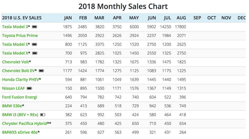 InsideEV's估计,8月特斯拉Model 3全美销量或交付量约1.78万辆,创电动车(EV)或充电式车辆(PEV)单月最高销售记录。并指出,仅特斯拉Model 3的销量就超过了宝马8月所有乘用车的销量总和(1.445万辆)。