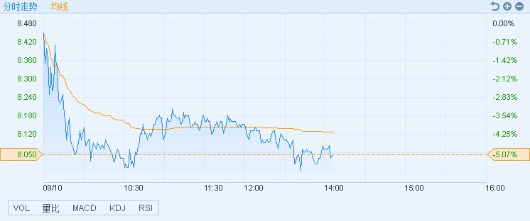 智通财经APP获悉,金蝶国际(00268)遭联席券商花旗大量抛售,股价下挫,截至14时05分,跌5.07%,报价8.05港元,成交额2.17亿。