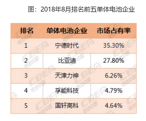 从电池企业来看,同上月相比,排名前三的企业没有变化,行业龙头地位企稳。宁德时代以1.47Gwh的动力电池装机量位列第一,占8月总装机量的35.3%。比亚迪紧随其后,动力电池装机量为1.16Gwh,占比27.8%。而排名第三的天津力神为0.26Gwh,占比6.26%。(林淼)