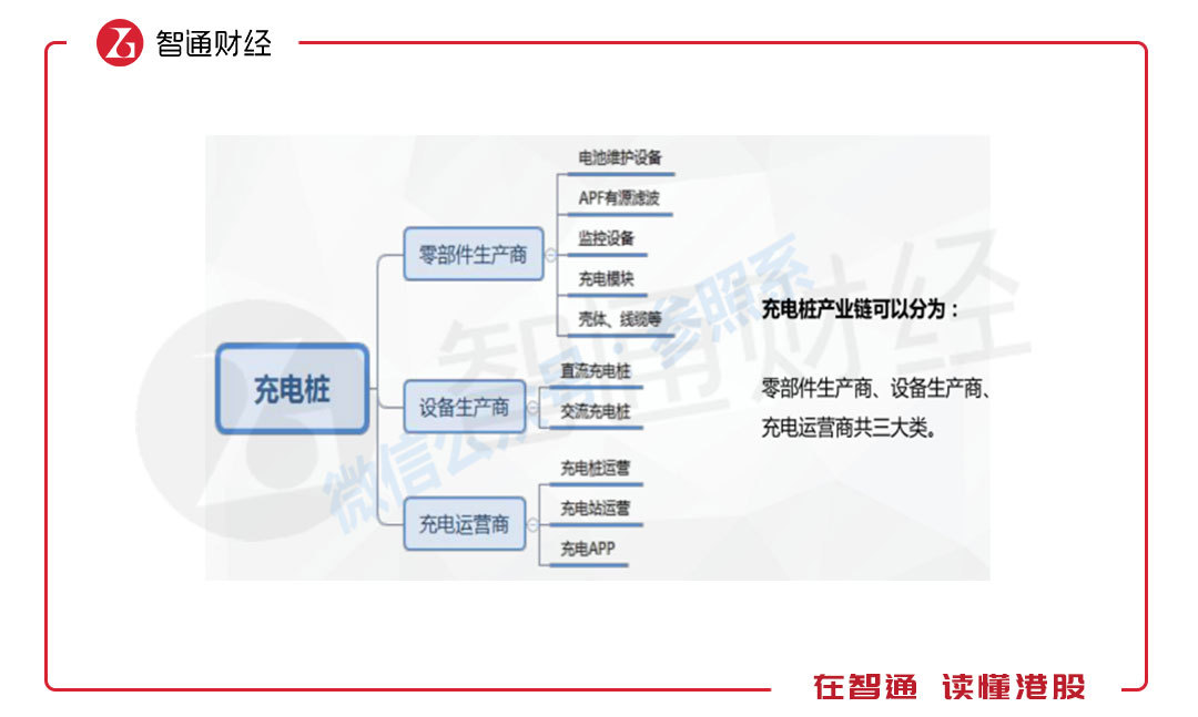 目前,国内的充电桩市场比较小,2016年市场规模仅约140.8亿元,行业虽小,但五脏俱全,充电桩上中下游产业链可分为零部件生产商、设备生产商和充电运营商三大类,而充电桩后期建设的爆发对产业链的各个链条都是巨大的发展机会。