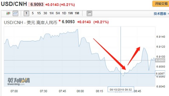 智通财经APP获悉,离岸人民币兑美元亚市早盘一度跌逾200点,报6.9155,后短线快速拉升约50点。截至发稿,报6.9093,跌143点子,跌幅0.21%。