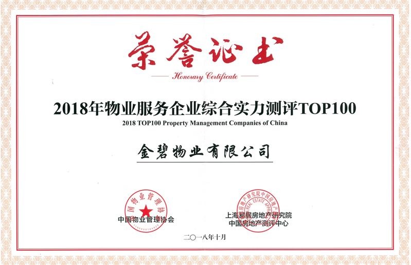 10月15日,第四届中国物业管理创新发展论坛在深圳举行。论坛上,中国物业管理协会正式发布“2018年全国物业服务企业综合实力百强榜”,金碧物业有限公司荣获第六名。