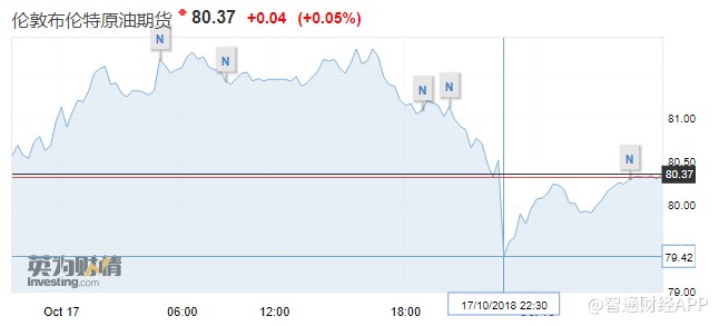 截至发稿,报80.37美元/桶,升0.05%或0.04点。WTI原油也有所下跌,报69.94美元/桶。