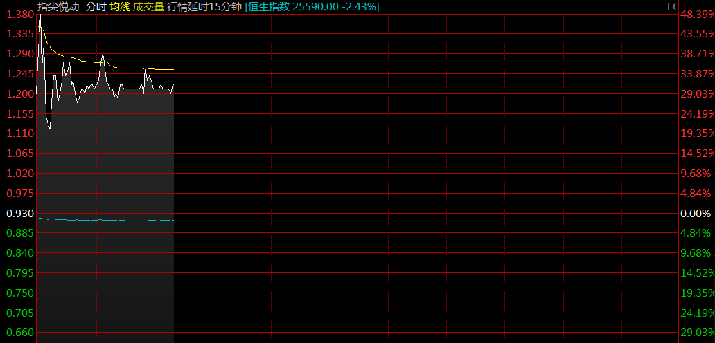 智通财经APP获悉,控股股东持股量增至55.39%,购买行动全面展示刘杰对公司的整体发展、前景及增长潜力充满信心。指尖悦动(06860)早盘大幅反弹,截至9时00分,涨29.03%,报价1.2港元,成交额176.16万。