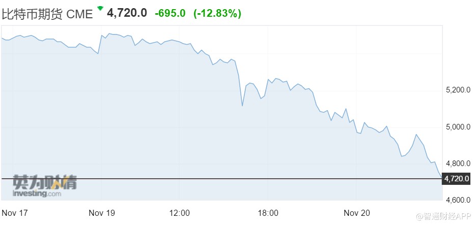 智通财经APP获悉,因悲观情绪持续存在,比特币在币值跌破6000美元长达一周之后,昨日又暴跌12.83%,跌破5000美元关口,报4720美元。过去7天,比特币跌超22%;今年以来累跌60%以上;与历史高点相比累跌70%以上。