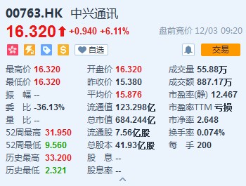 个股方面,周日市场传来好消息,G20峰会上中美元首在贸易摩擦议题上,中美双方取得了积极进展。受益于G20峰会推动,中兴通讯(00763)早盘高开6.11%,报16.32港元。(王岳川)