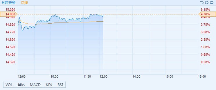 智通财经APP获悉,本届G20峰会上,中美就经贸问题达成共识,决定停止升级关税等贸易限制措施。贸易摩擦的超预期缓和,为小米凭借商业模式创新和技术创新参与国际竞争松绑,该股股价应声而涨。截至13时05分,涨4.76%,报价14.96港元,成交额4.03亿。