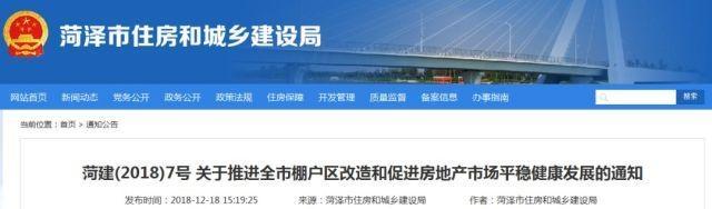 昨日下午,山东省菏泽市住房和城乡建设局网站公布了发布了《关于推进全市棚户区改造和促进房地产市场平稳健康发展的通知》(后简称为《通知》),在限制新购住房转让限制与降低市区商品房预售资金监管方面较此前房地产调控政策大幅松绑。这是本轮房地产调控周期中,地方出现的首个取消限售的政策。(林淼)