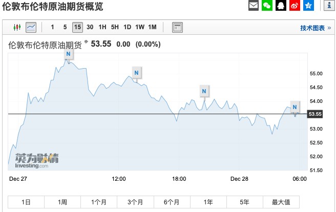 布伦特原油期货无涨跌,报53.55美元/桶。