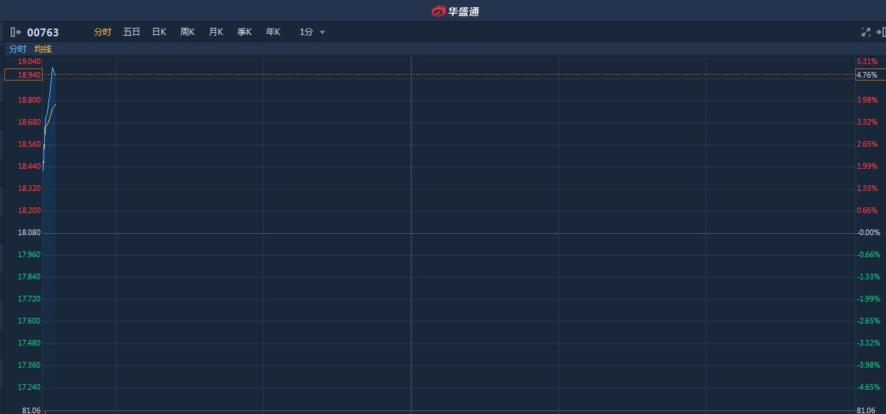智通财经APP获悉,英国确认华为可用,中兴通讯(00763)早盘股价直线拉涨,截至9时34分,涨4.98%,报价18.98港元,成交额3912万。