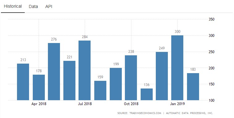 美国供应管理协会(ISM)昨天(3月6日)公布了2月的ADP数据,今值18.3万,前值21.3万(上修:30万),低于预期的19万。该数据显示,在经历了一段火爆的开局后,美国公司层面的就业创造活动有所降温。