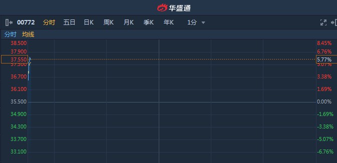 智通财经APP获悉,阅文集团(00772)昨日盘后公布年度业绩,股东应占溢利增长63.7%至9.1亿元人民币,超市场预期,早盘股价大幅攀升。截至9时32分,涨5.77%,报价37.55港元,成交额4832万。