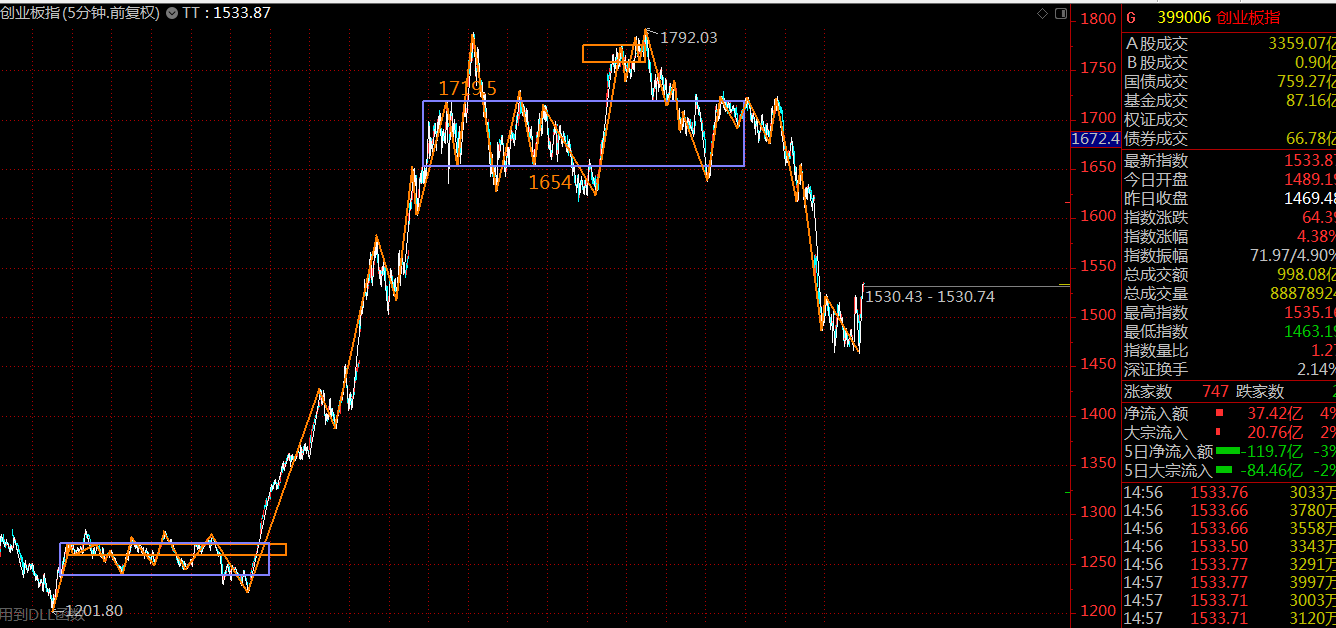 创业板这里走势结构粗暴直接的多,目前已远离上方的三十分钟中枢,压力位在上方中枢下沿1616点附近,空间较大。相对来说,短期小票走势可能会强一些。