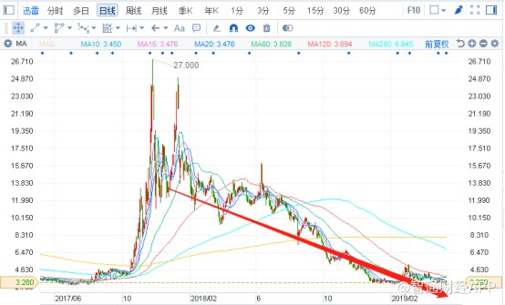 众所周知,2017年市场上最大的风口便是区块链,而迅雷则是在2018年年初赶上了这趟“末班车”。也正是在那时,迅雷股价从不足每股5美元大幅上涨至最高每股27美元。