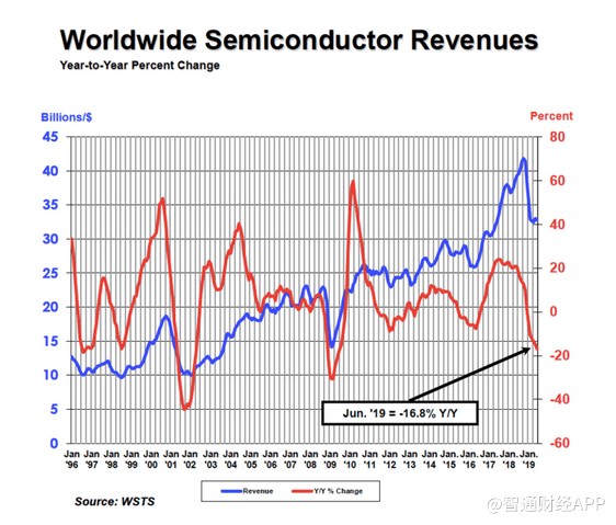 SIA总裁兼执行长John Neuffer在声明中指出,2019年上半年,全球半导体销售仍处于下滑趋势,同比下滑14.5%。(陈雨)